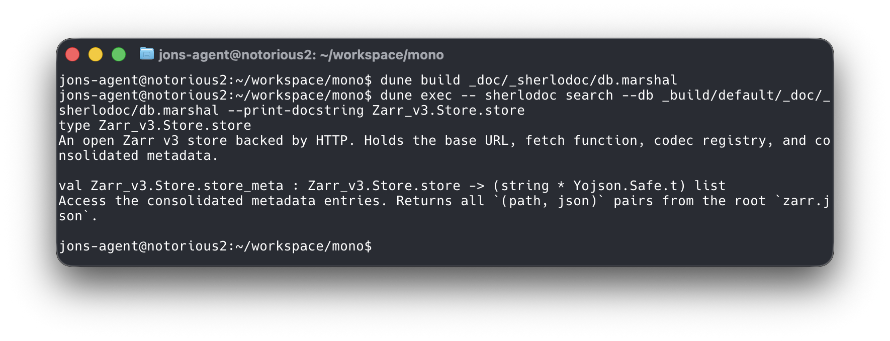 In the more immediate future though, perhaps with my odoc-maintainer hat on, I still want to make sure that I extract the useful parts of what I've done and get them upstreamed. While everything I've done is all open source and published, there's a lot of work I need to do so that others in the community will benefit from my changes. While it's technically possible to add my opam-repo to your switch, and install my versions of odoc, dune, and my various plugins, I don't think many people are actually going to do that. Worse than that, people might get their agents to just grab the source and mutate it further, just diluting the efforts going into it.